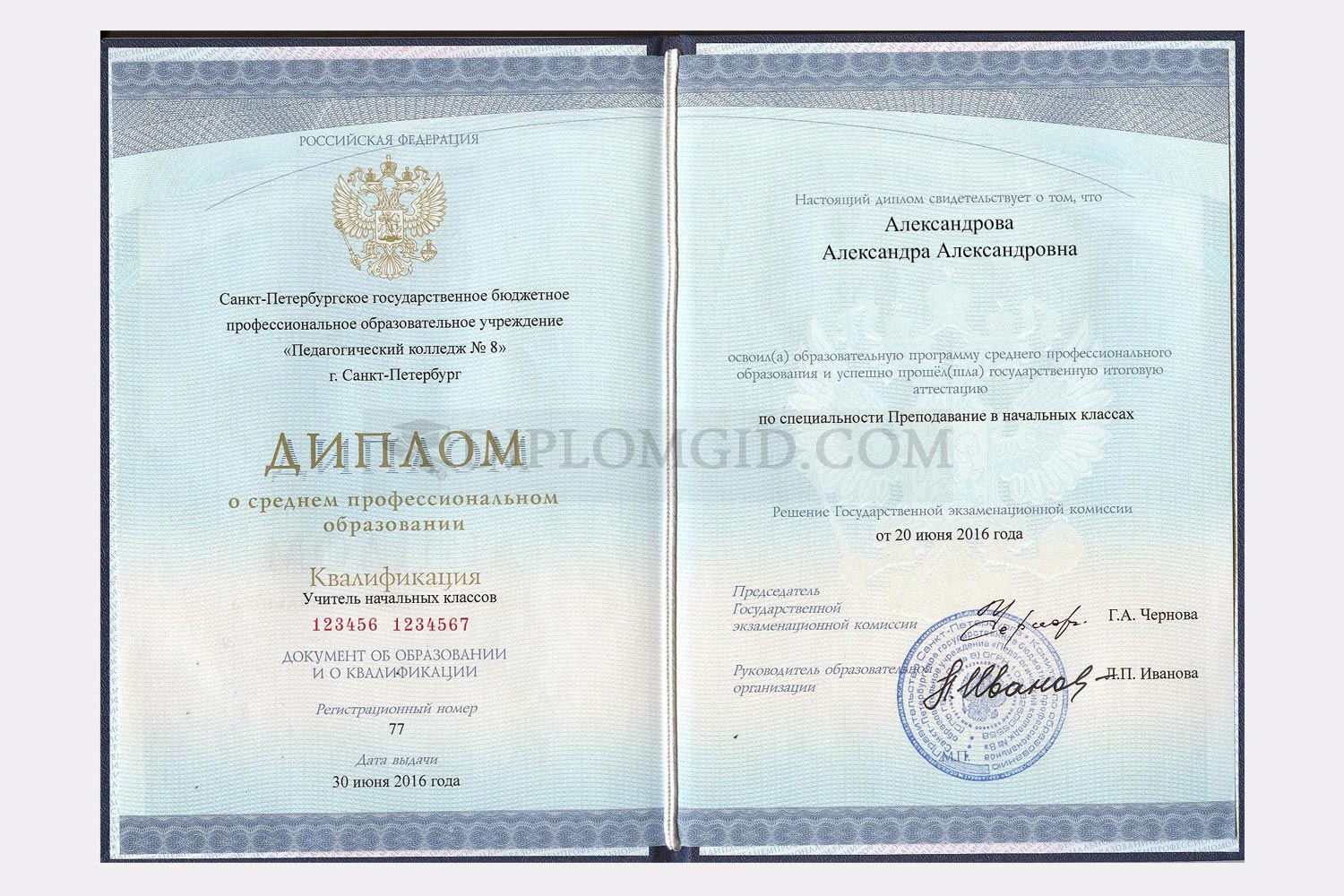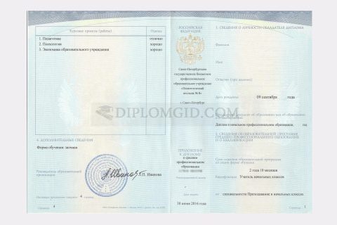 Образцы дипломов о среднем и начальном образовании